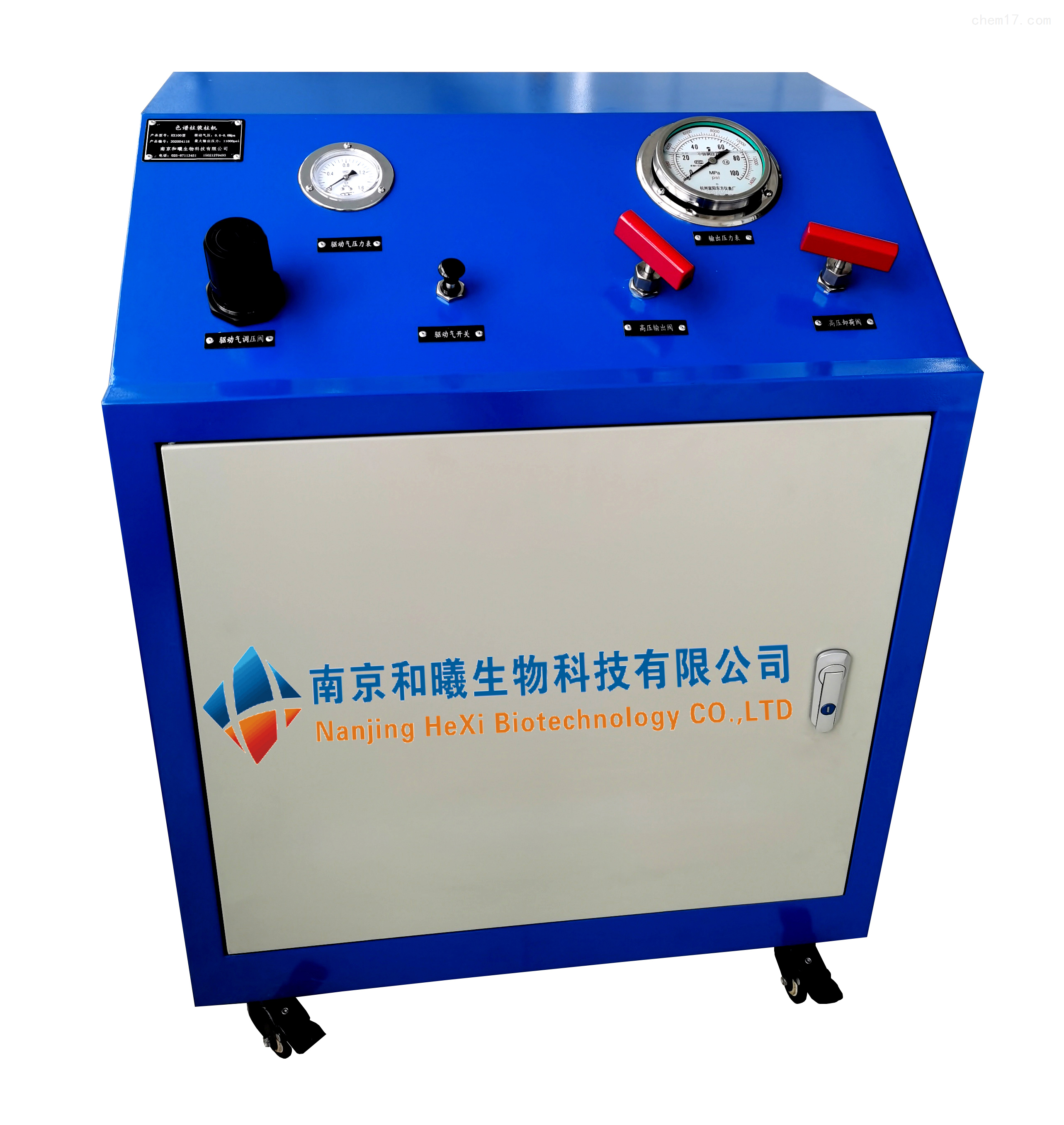 HX200型色谱装柱机是USA进口气液高压增压泵,采用高压气动增压原理,放大比为1:72,驱动气体压力为:0.6-0.8MPa , 最高压力:11000psi,最大输出流量1140ml/min 是湿法填充高效液相色谱柱的专用设备。系统采用进口增压泵,气动液压效果密封稳定,具有压力高,升压快,回压小,便携式,结构简单,便于色谱柱的装填和拆卸,维护使用方便,外型美观等特点。通过对驱动气压力的调整,可以对输出液体压力无级调节;当驱动气压力与输出液体压力平衡时,气动泵便停止动作,输出压力也稳定在预调的压力上。通过控制气源的进气量,可以控制泵的动作频率,从而控制系统的输出流量。整套系统具有体积小.重量轻.操作简单.安全可靠.适用范围广.输出压力可调等优点。用HX200 型色谱装柱机填装的高效液相色谱柱性能稳定,柱效高,对称性好,不塌陷,是较为理想的装柱设备,根据装柱需求可配备不同规格接头,可填装不同型号的液相色谱柱。适合科研单位小型化研发应用。